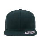 Yupoong 6-Panel Classic Snap-Back Solid Cap. 6 panel high profile 3 crown. Flat visor with green undervisor. 80/20% acrylic/wool. Classic shape cap with a retro edge. Matching plastic snap. Hard buckram. Premium wool blend, The 6089MT has contrasting eyelets and top button, visor and plastic snap.